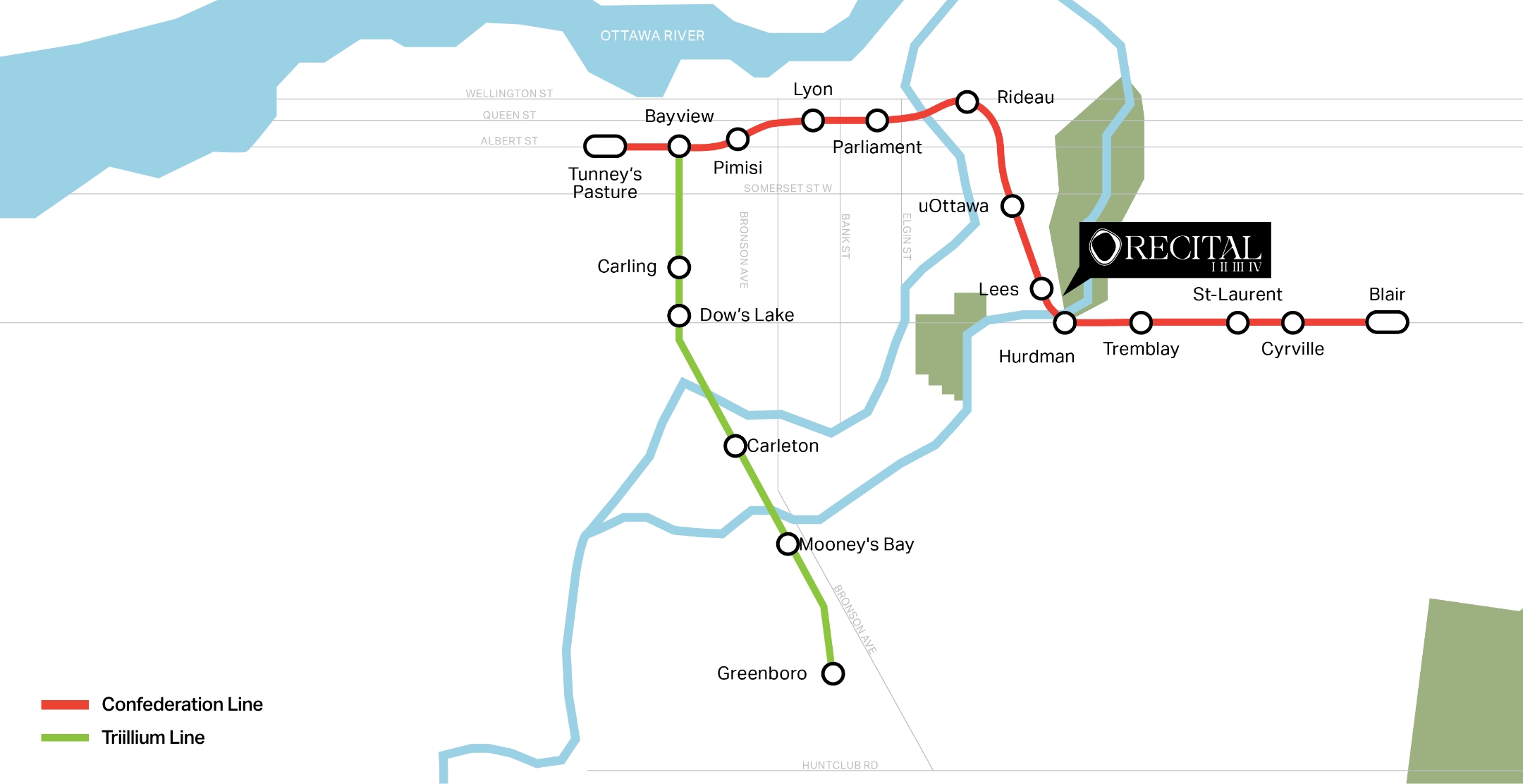 Experience ultimate connectivity at Recital. Located at Lees station, you will have access to all of Ottawa in the span of minutes. Reach downtown in 10 minutes, and uOttawa in 1 stop. Experience the epitome of accessibility at Recital.